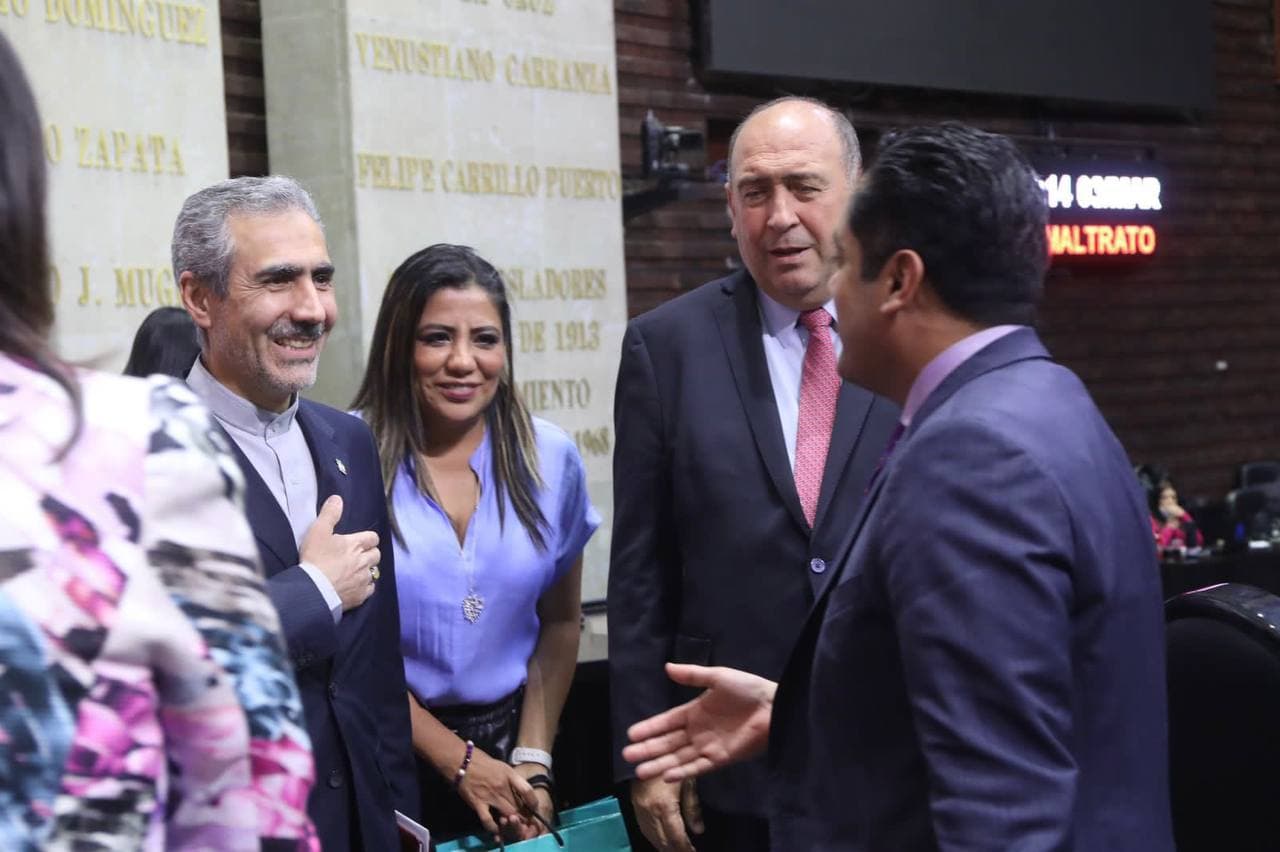 در ادامه جناب آقای قزیلی به همراه خانم لورنا پنیون در صحن مجلس نمایندگان مکزیک حاضر شد، و رئیس مجلس نمایندگان حضور سفیر جمهوری اسلامی ایران را در صحن علنی مجلس اعلام و خوش آمد گویی و ادای احترام شکل گیری گروه دوستی پارلمانی با ایران اعلام شد.