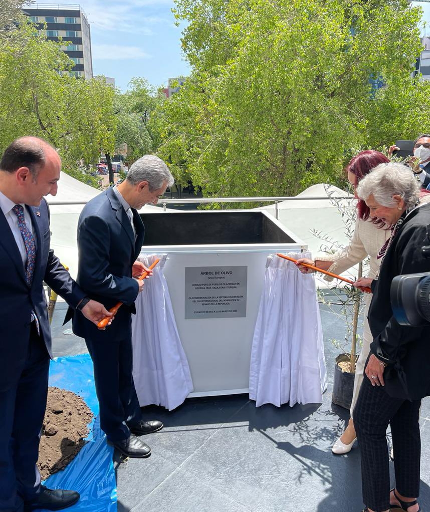 مراسم بزرگداشت روز بینالمللی نوروز در مجلس سنای مکزیک با حضور رئیس و اعضای مجلس سنا و تعدادی از سفرای مقیم مکزیکوسیتی در 3 فروردین ماه 1401 در محل آن مجلس برگزار شد. این مراسم در چهار بخش کاشت نهال زیتون، سخنرانی ، بازدید از سفرههای نوروزی و معرفی آئین و سنت های نوروز و اجرای موسیقی سنتی ایرانی برگزار گردید. در پایان این مراسم، گروه موسیقی نوای مهر قطعاتی از موسیقیهای فاخر سنتی کشورمان را اجرا کردند.