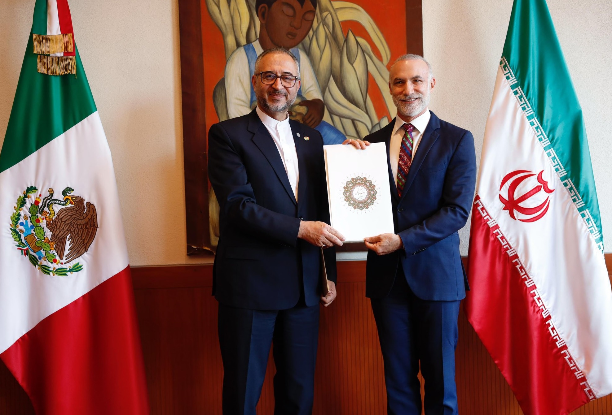 جناب آقای ابوالفضل پسندیده، سفیر جدید جمهوری اسلامی ایران نزد ایالات متحده مکزیک، با تحویل رونوشت استوارنامه خود به جناب آقای جاناتان چایت، مدیرکل تشریفات وزارت خارجه مکزیک در روز پنج شنبه 12 تیرماه 1404، رسما ماموریت خود را آغاز کردند.