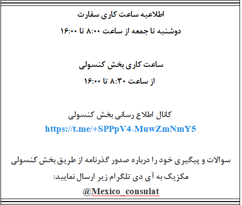 اطلاعیه کاری ساعت کاری سفارت جموری اسلامی ایران در مکزیک
